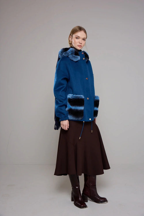 ALPAKA REX KÜRK DETAYLI KABAN LACİVERT