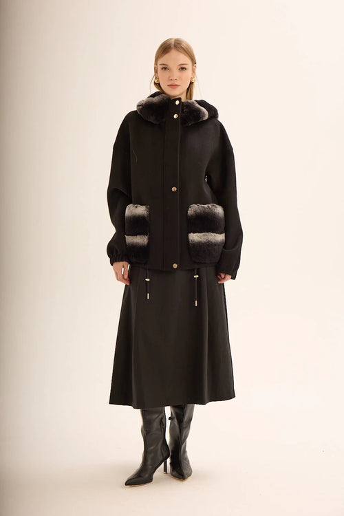 ALPAKA REX KÜRK DETAYLI KABAN SİYAH